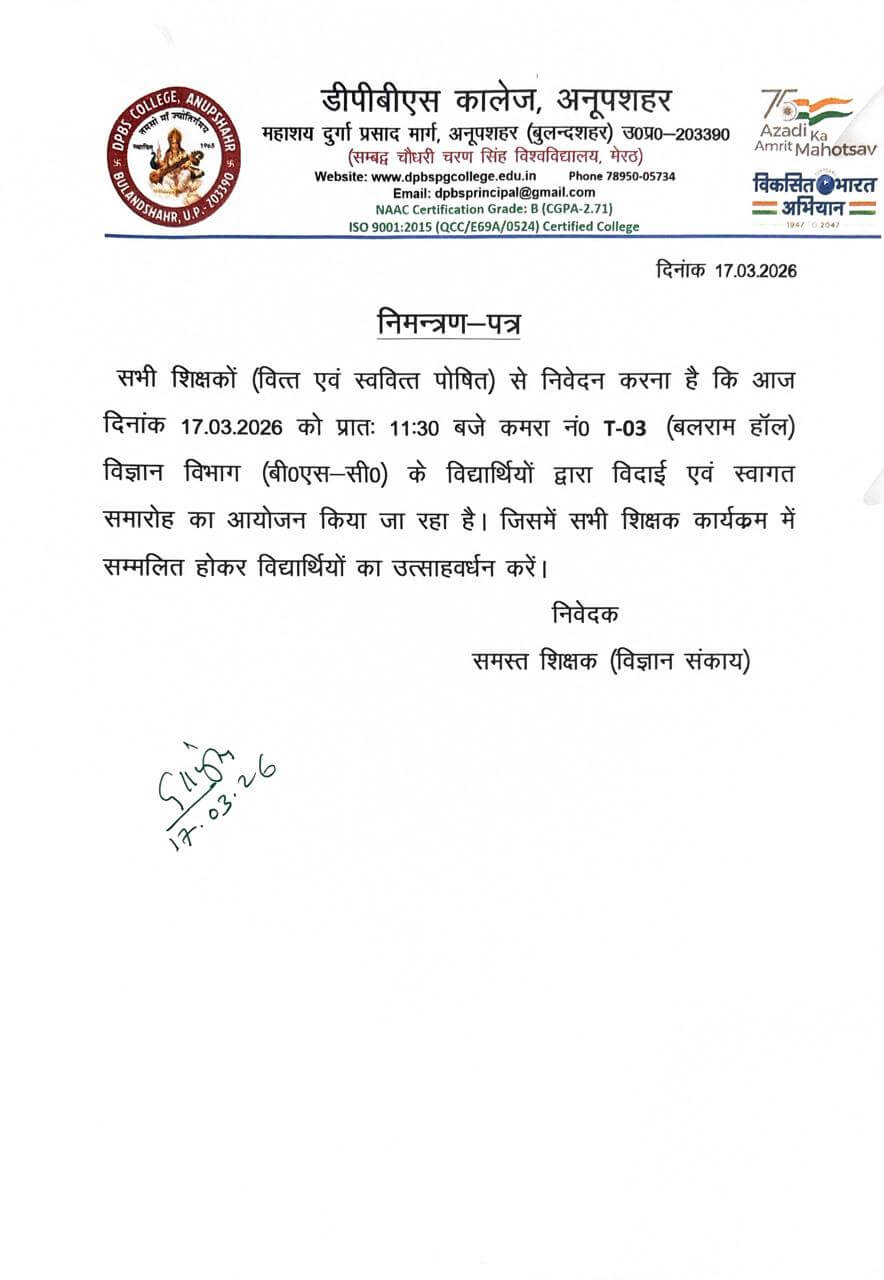 नवनिर्मित प्रेक्षागृह एवं लिफ्ट के शुभारंभ के आयोजन पर आमंत्रण के संदर्भ में