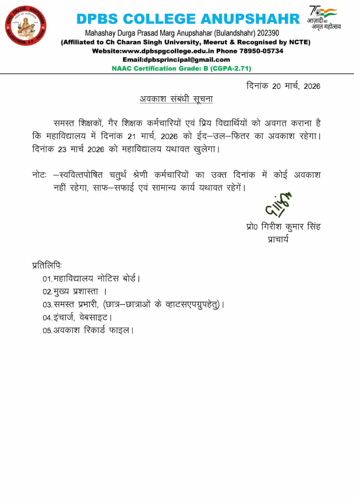 Regarding Holidays of Kartik Purnima(For Students)