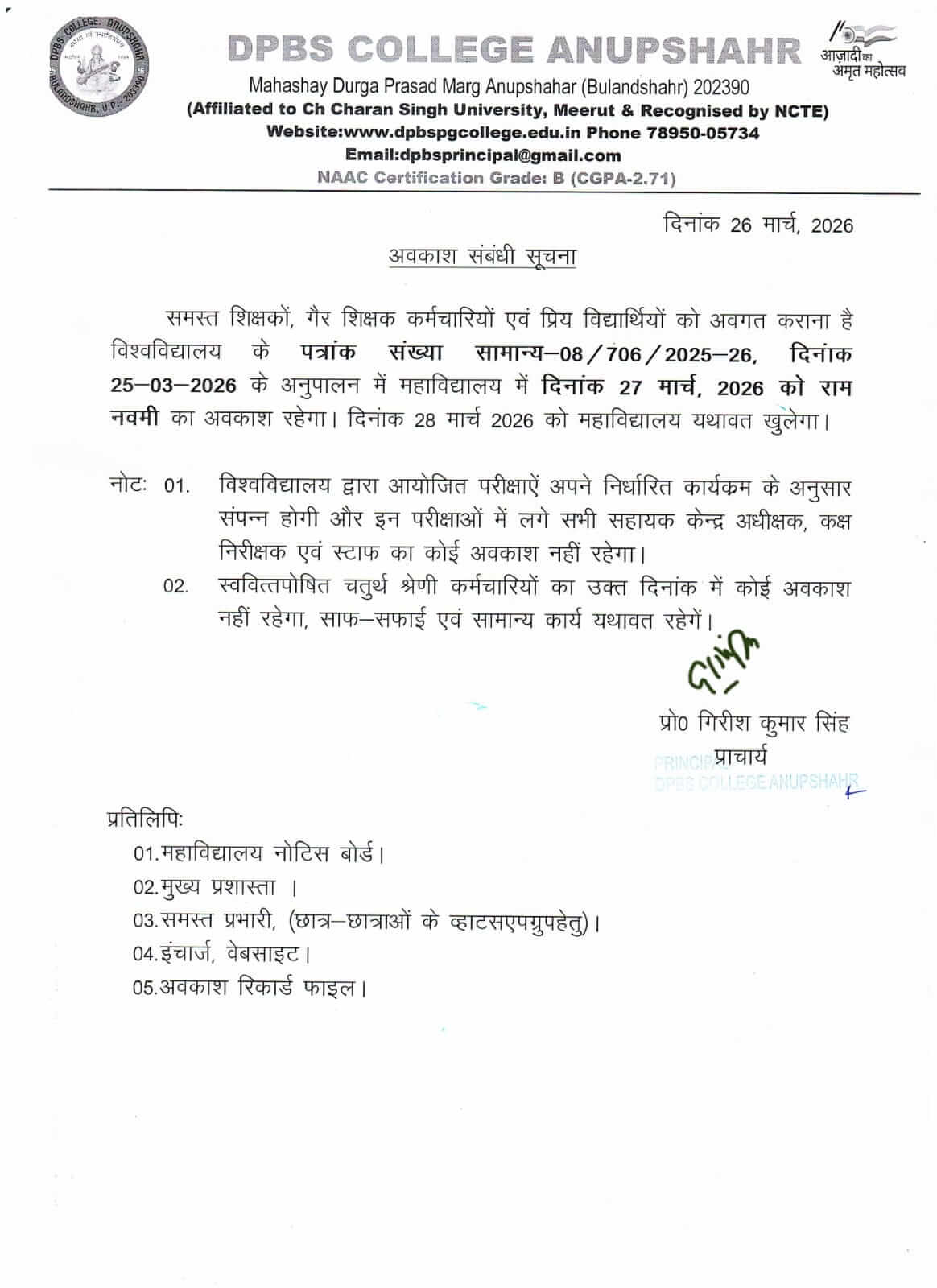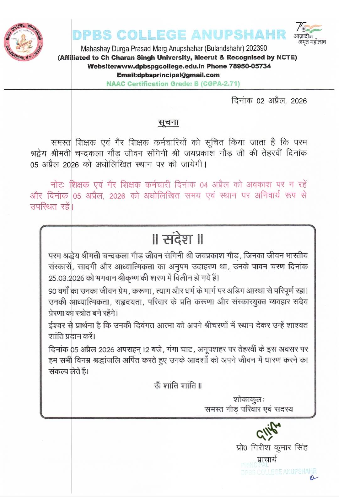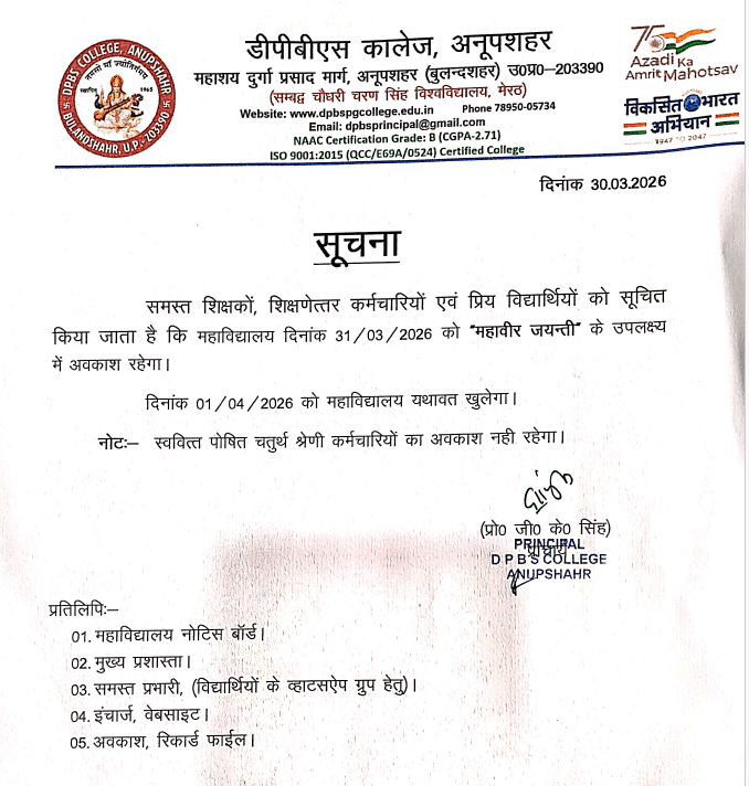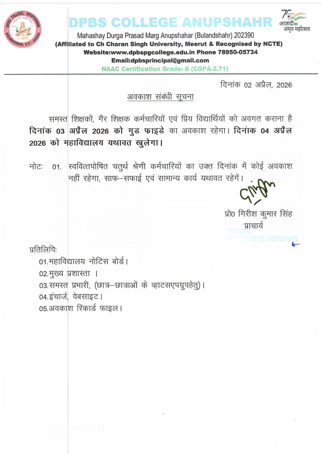 गुरु तेग बहादुर शहीदी दिवस के उपलक्ष में अवकाश के संदर्भ में(For Staff)