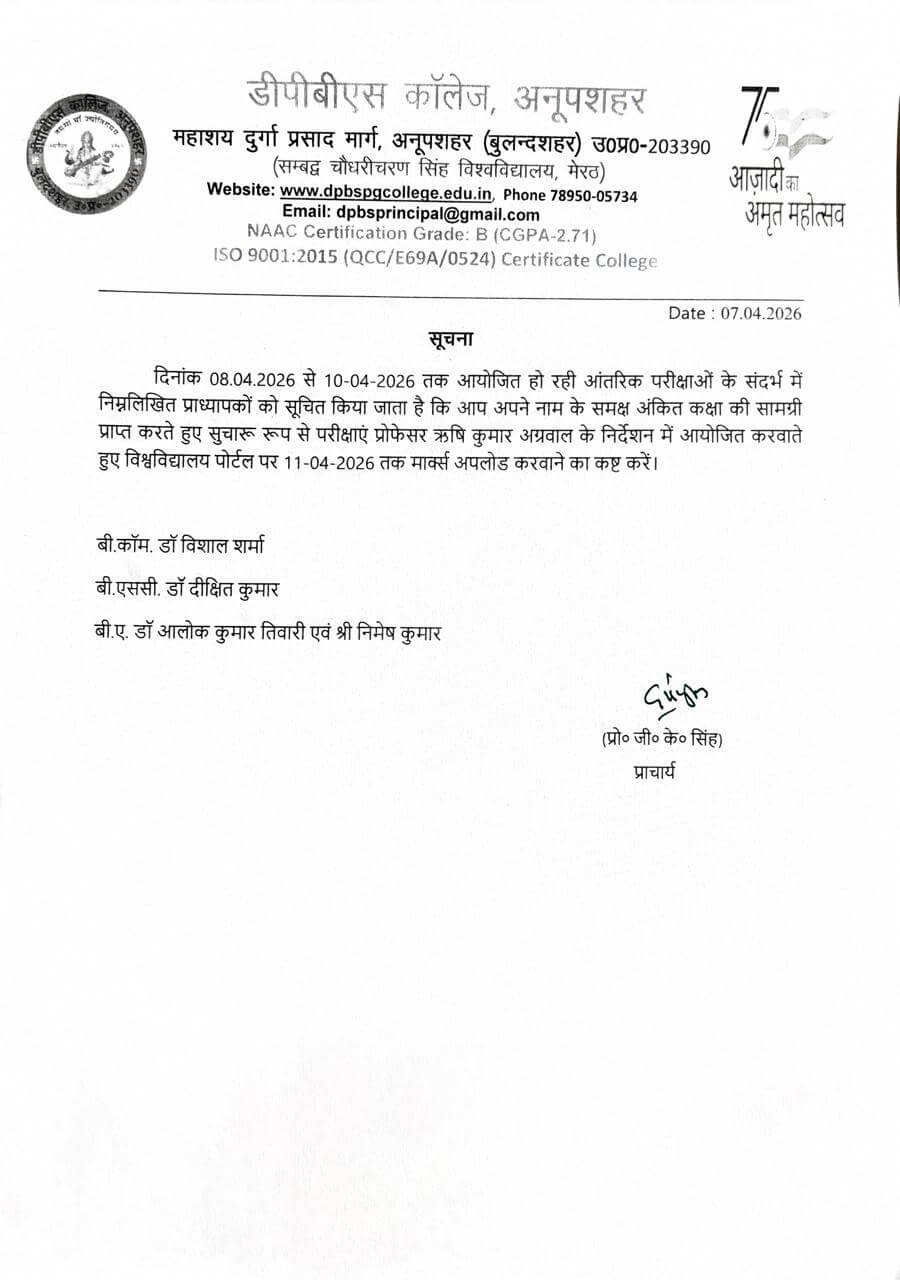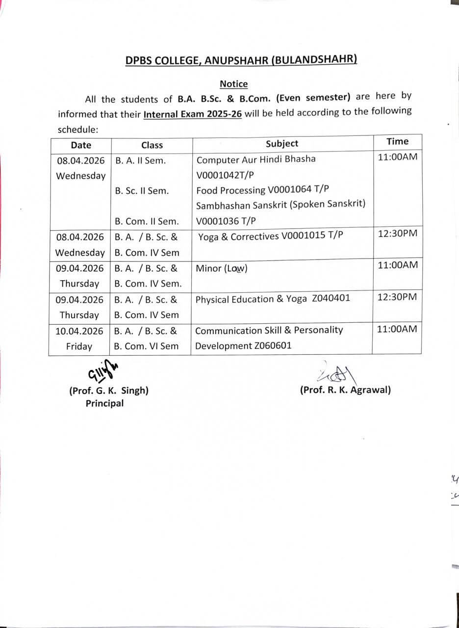 Regarding Internal Exam of Major Courses for II Semester under NEP