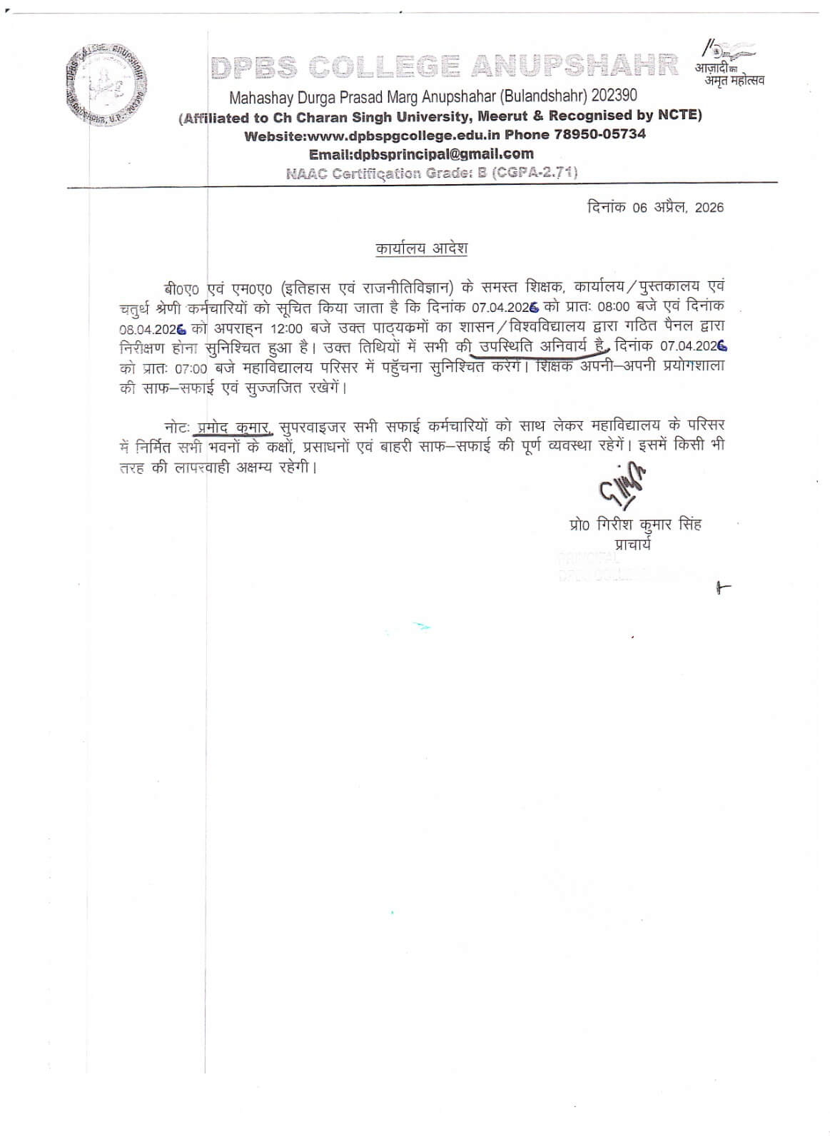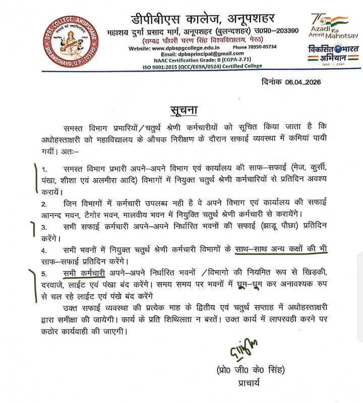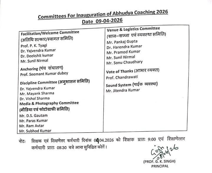 महाविद्यालय में अध्यापन कार्य के संदर्भ में