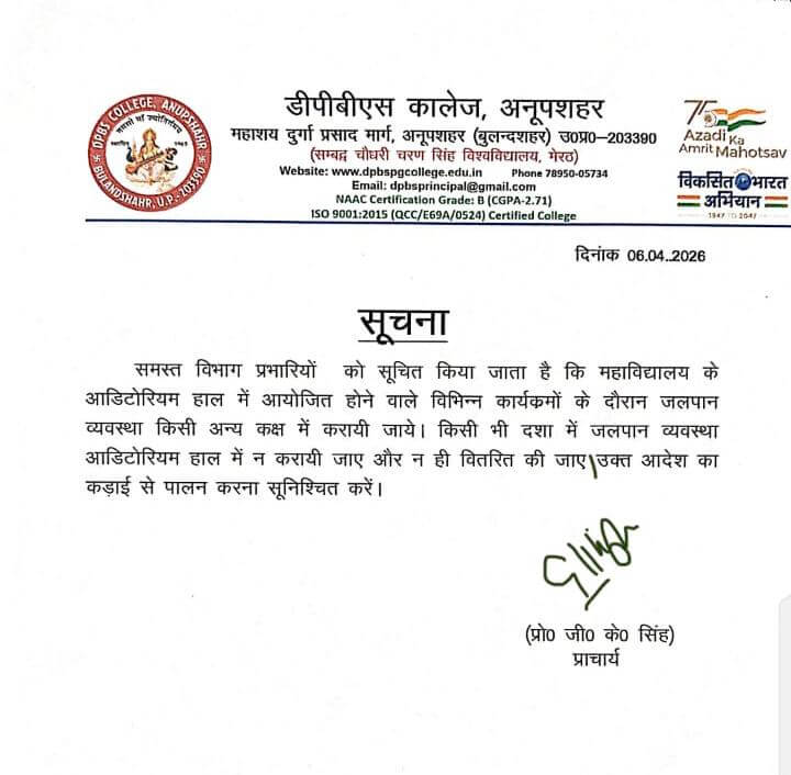 नवनिर्मित प्रेक्षागृह एवं लिफ्ट के शुभारंभ के आयोजन पर स्टाफ की ड्यूटी के संदर्भ में