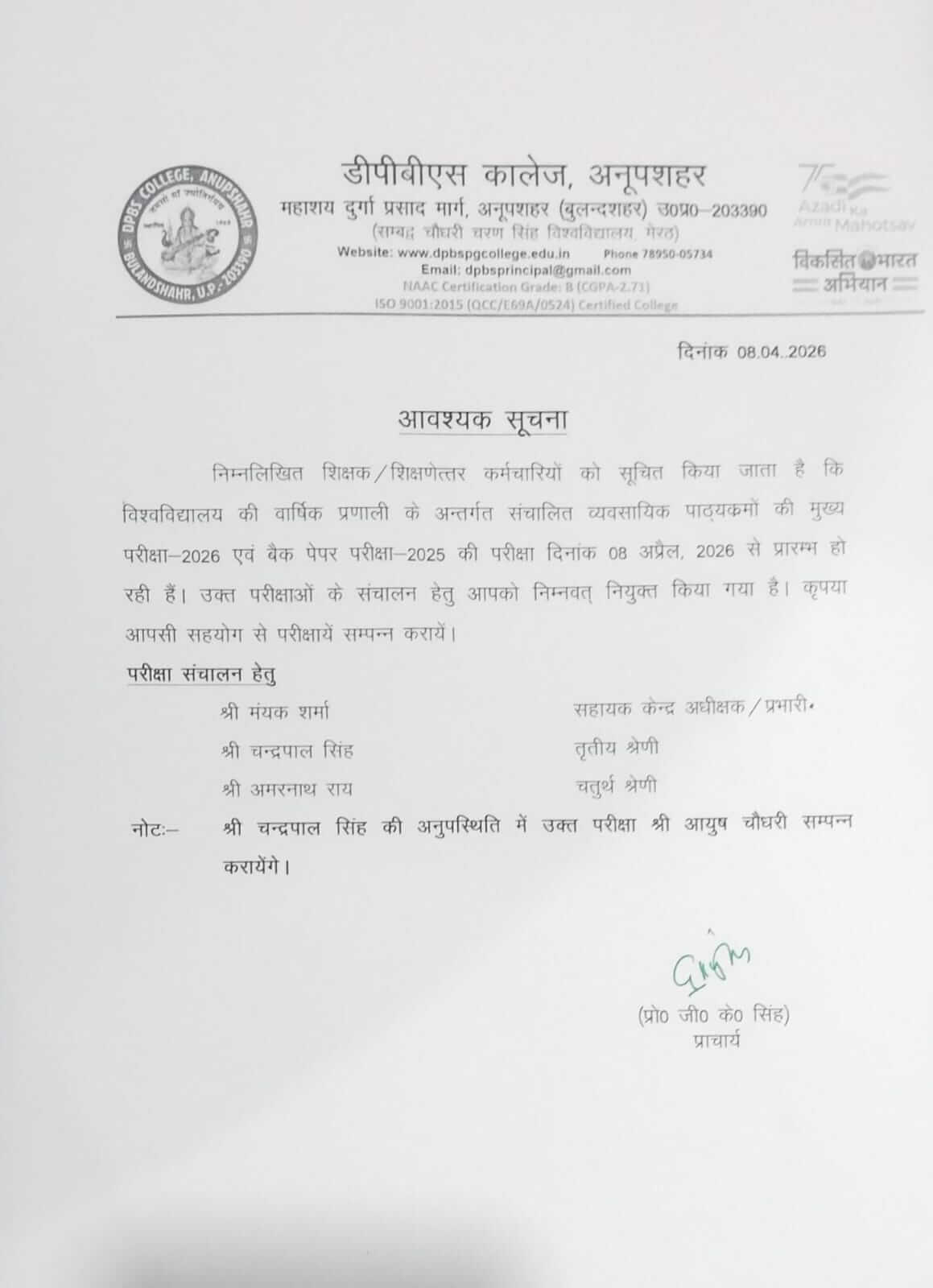 Notice to Teaching & Non-Teaching Staff for Main Exam-2022