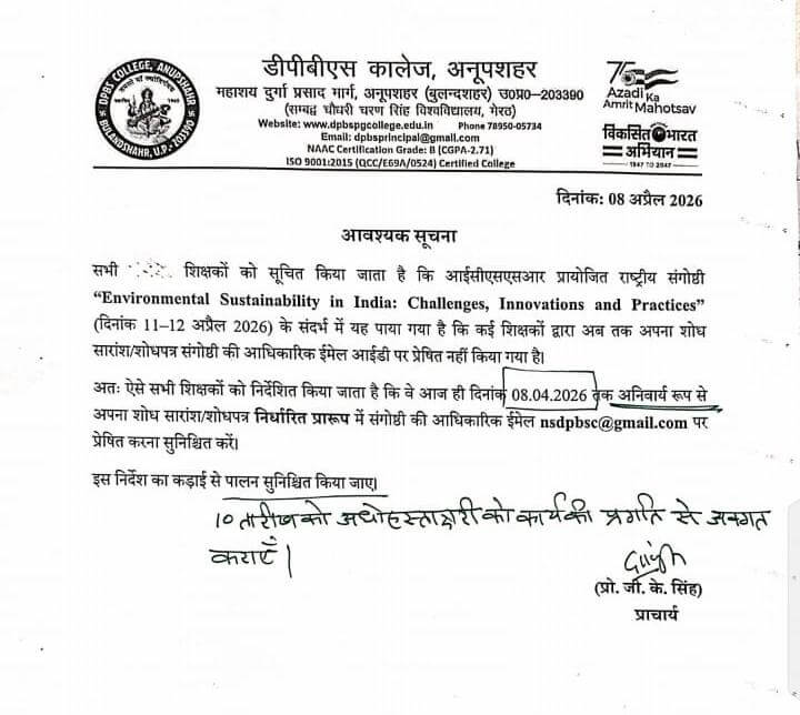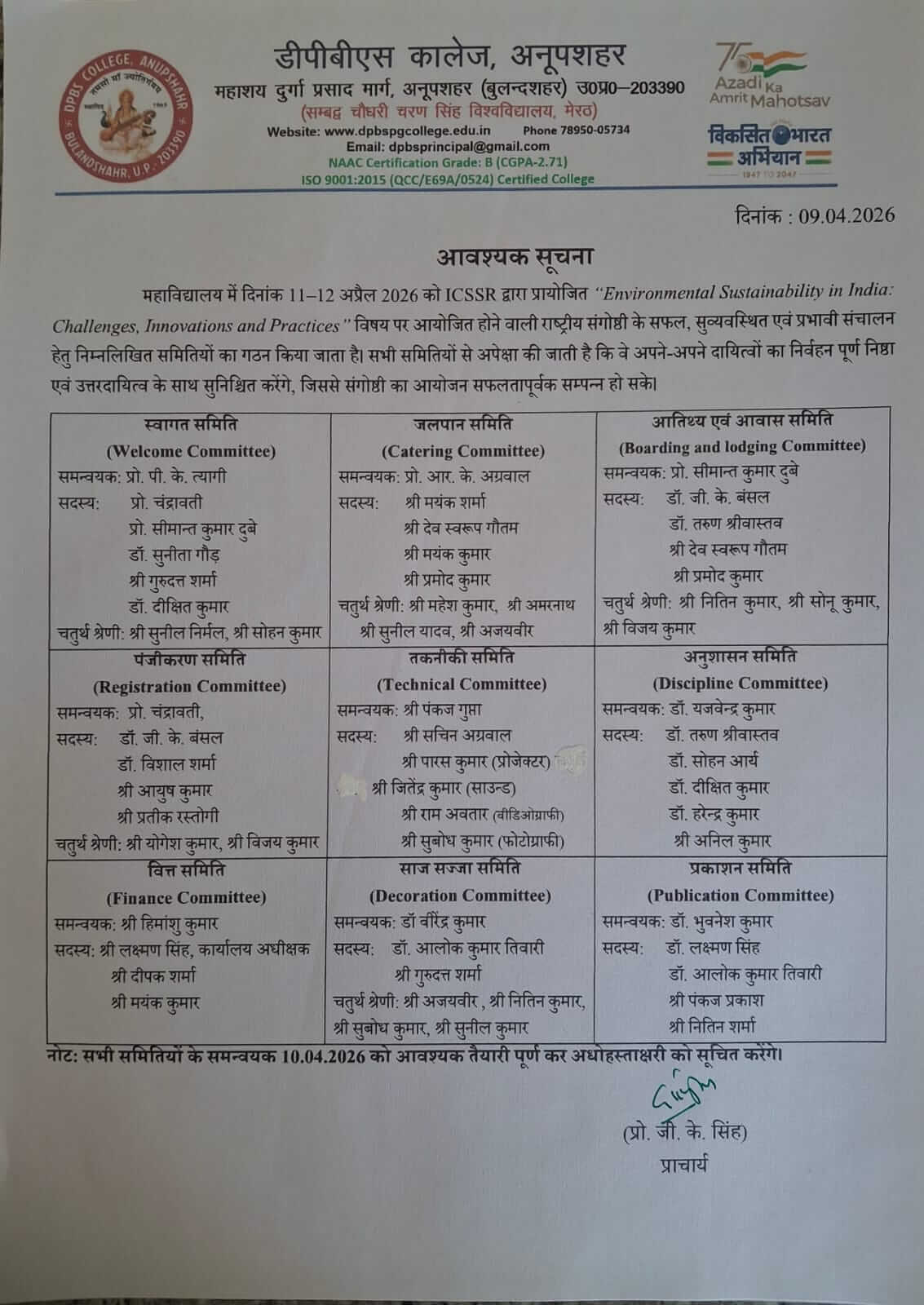 Regarding National Seminar on “Environmental Sustainability in India: Challenges, Innovations and Practices”