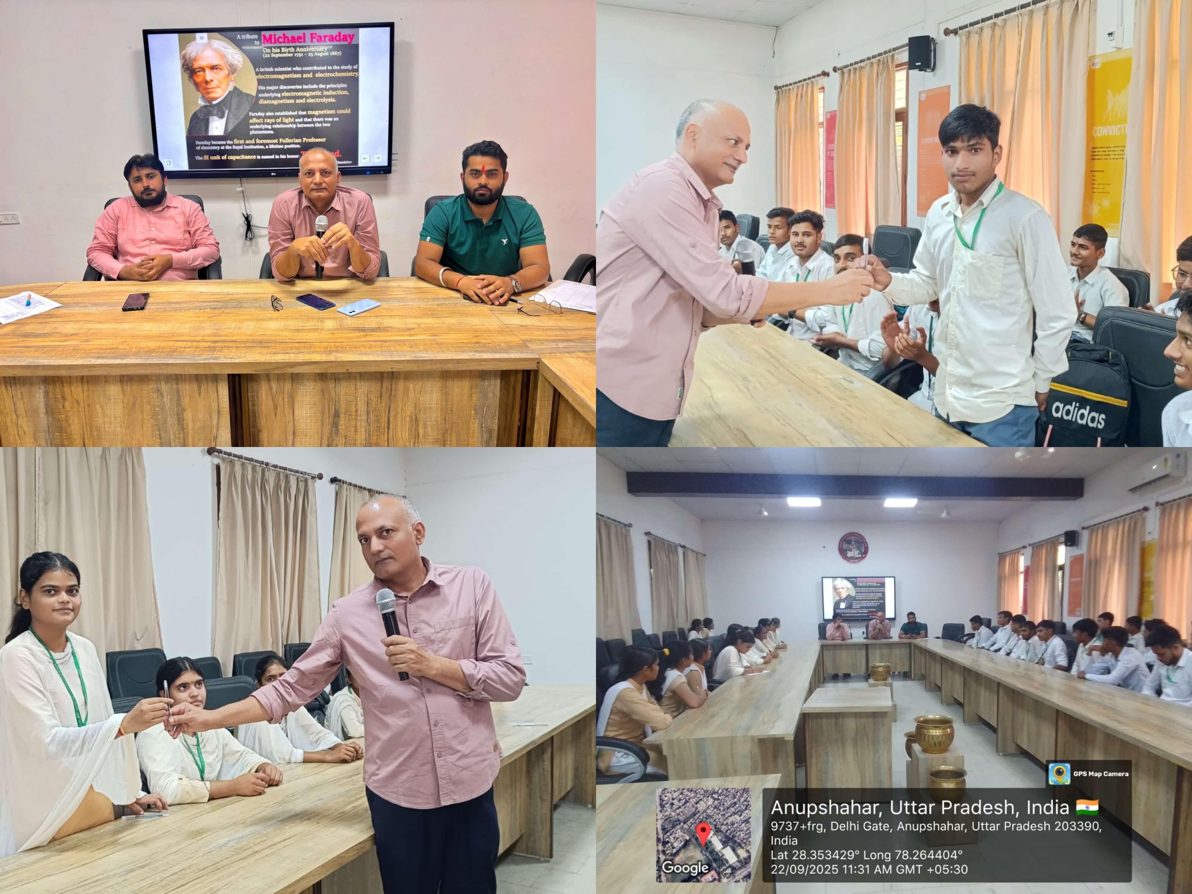 डीपीबीएस महाविद्यालय में दिनांक 22 सितम्बर 2025 को प्राचार्य प्रो. जी.के. सिंह के कुशल निर्देशन में भौतिक विज्ञान विभाग द्वारा महान भौतिक वैज्ञानिक माइकल फराडे का जन्मदिवस बड़े उत्साह के साथ मनाया गया।