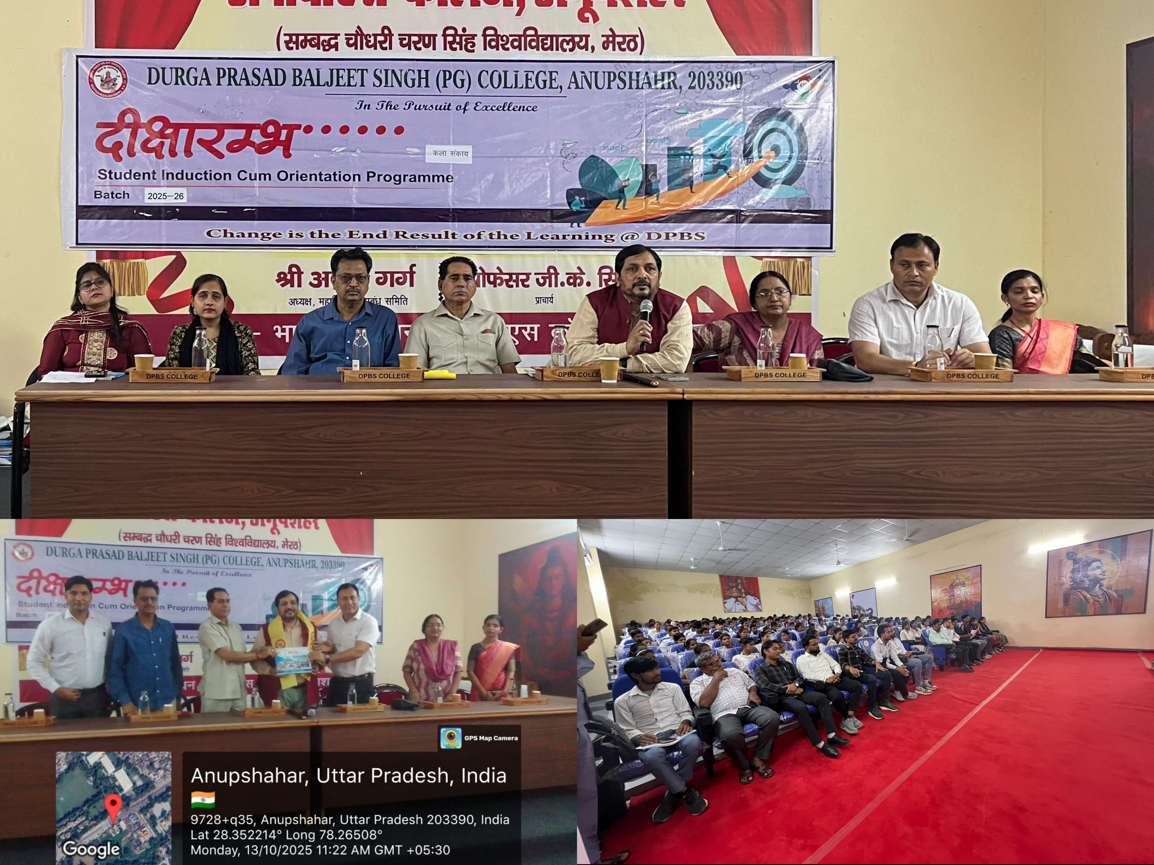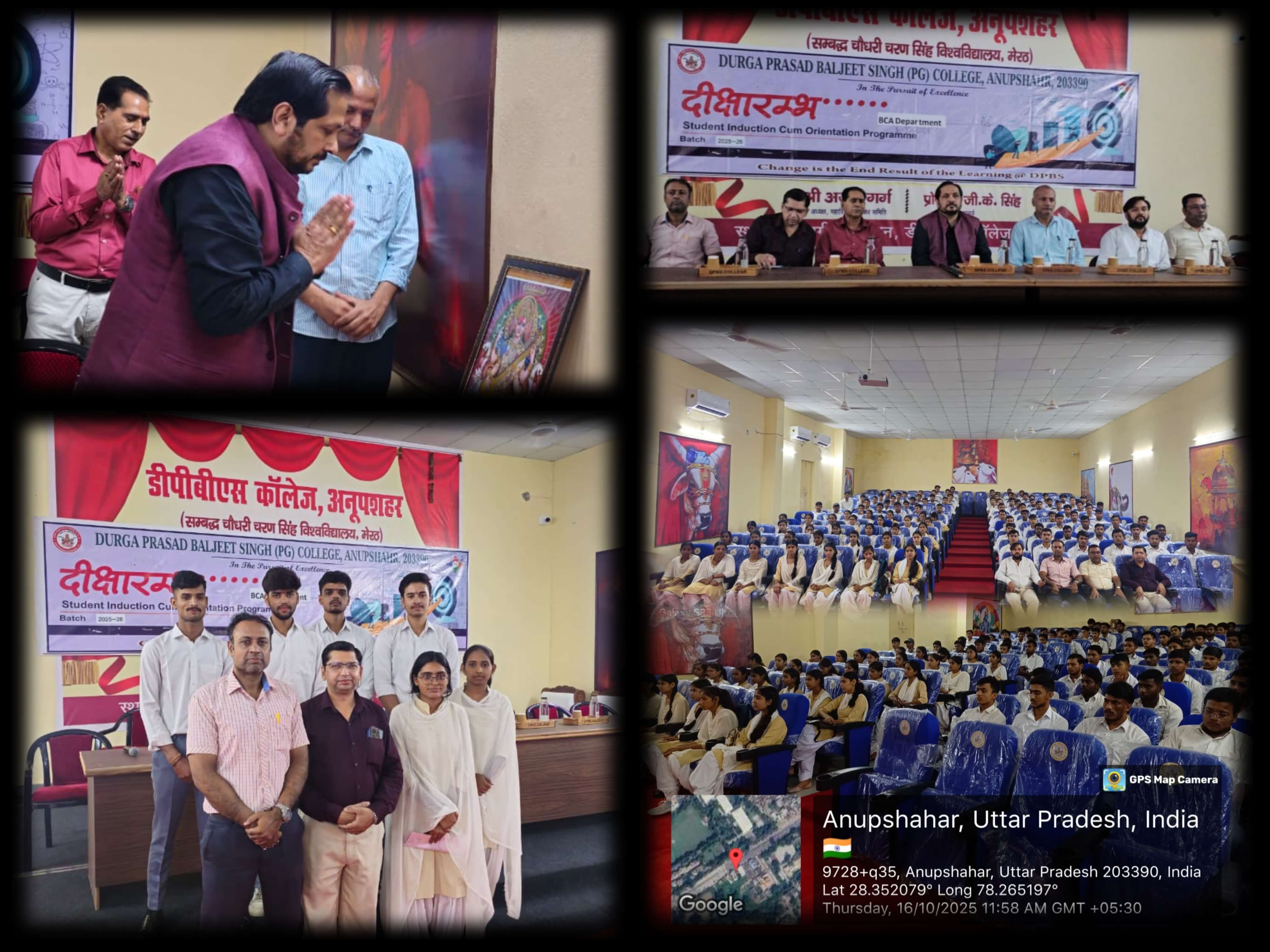 दिनांक 16/10/2025 को डीपीबीएस कॉलेज अनूपशहर के बीसीए विभाग में दीक्षारम्भ कार्यक्रम का सफल आयोजन किया गया। कार्यक्रम की अध्यक्षता महाविद्यालय प्राचार्य प्रो. जी. के. सिंह जी ने की। उन्होंने अपने संबोधन में छात्रों को महाविद्यालय में उपलब्ध सुविधाओं और डिजिटल लाइब्रेरी के बारे में छात्रों से विस्तृत चर्चा की ताकि छात्र कॉलेज में उपलब्ध सुविधाओं का अधिकतम लाभ ले सके।