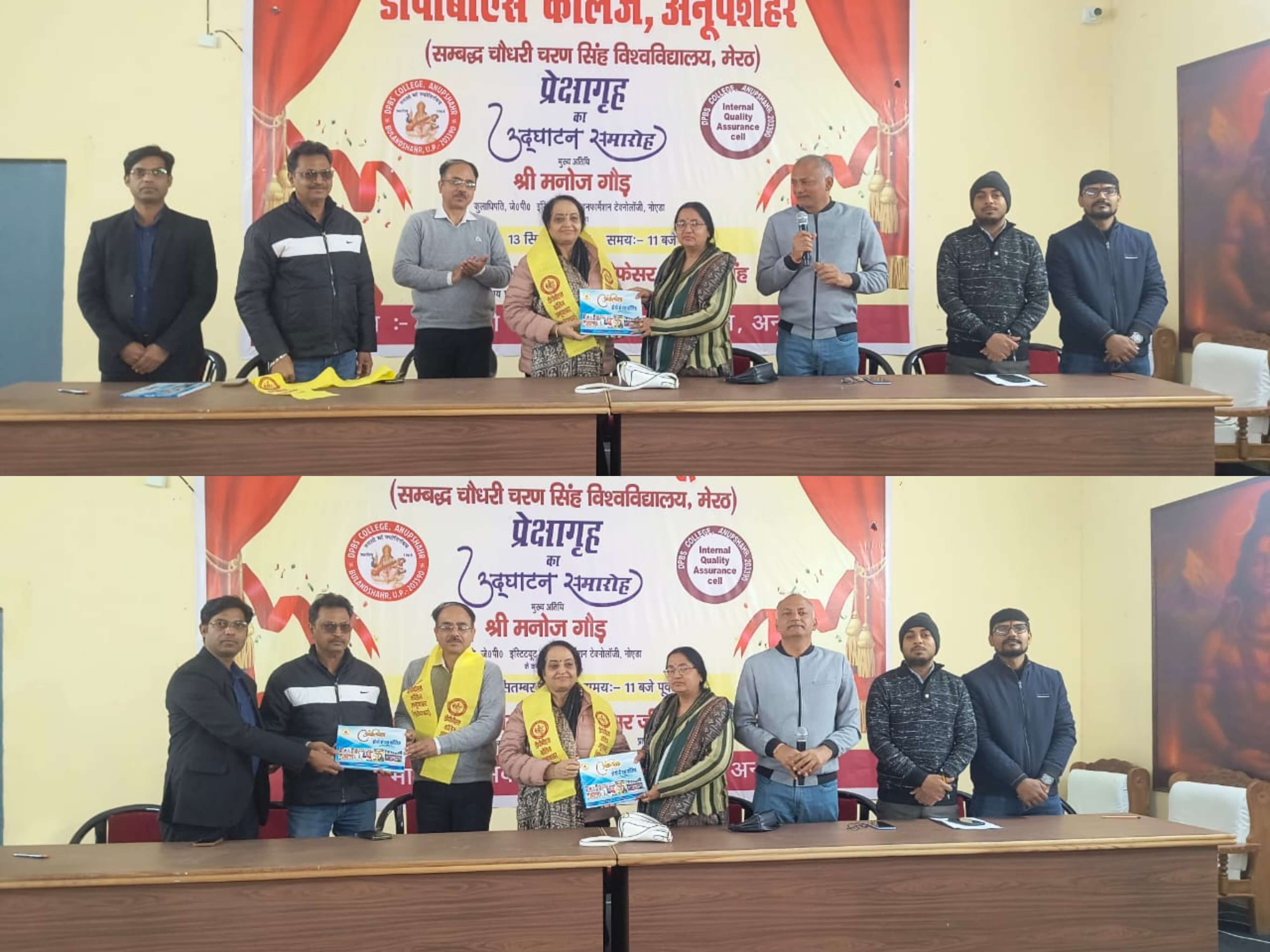 डीपीबीएस कॉलेज अनूपशहर में दिनांक 13 सितंबर 2025 को नवनिर्मित प्रेक्षागृह एवं लिफ्ट के उद्घाटन का कार्यक्रम आयोजित हुआ। इस कार्यक्रम की अध्यक्षता महाविद्यालय प्रबंध समिति के अध्यक्ष अजय गर्ग ने तथा संचालन डॉ तरुण श्रीवास्तव ने किया। महाविद्यालय प्राचार्य प्रो गिरीश कुमार सिंह तथा महाविद्यालय प्रबन्ध समिति के अध्यक्ष अजय गर्ग ने मुख्य अतिथि मनोज गौड़, कुलाधिपति जेपी इंस्टीट्यूट ऑफ इन्फॉर्मेशन टेक्नोलॉजी नोएडा का अंगवस्त्र पहनाकर एवं प्रतीक चिन्ह भेंट कर स्वागत किया, कुलाधिपति मनोज गौड़ ने नवनिर्मित प्रेक्षागृह तथा लिफ्ट का फीता काट कर उद्घाटन किया। इस अवसर पर मुख्य अतिथि मनोज गौड़ ने महाविद्यालय में स्थापित शूटिंग रेंज का भी निरीक्षण किया तथा स्वयं भी शूटिंग की। इस अवसर पर जेपी विश्वविद्यालय अनूपशहर के कुलसचिव संजय अग्रवाल ने नवनिर्मित भवन एवं प्रेक्षागृह के निर्माण की विशेषताएं बताते हुए इसे महाविद्यालय के संरक्षक माननीय जेपी गौड़ जी के शिक्षा के प्रति लगाव एवं समर्पण का प्रतिफल बताया। जेपी विश्वविद्यालय अनूपशहर के कुलपति प्रो राजीव सक्सेना ने प्रेक्षागृह के निर्माण को अनूपशहर क्षेत्र के लिए विशेष उपलब्धि बताते हुए कहा कि विभिन्न शैक्षिक एवं सांस्कृतिक गतिविधियों का आयोजन उत्कृष्ट ढंग से किए जा सकेंगे। इस अवसर पर मुख्य अतिथि मनोज गौड़ ने अपने उद्बोधन में कहा कि माँ गंगा एवं पिता श्री जयप्रकाश गौड़ जी की कृपा से उन्हें अनूपशहर से सदैव विशेष लगाव रहा है, महाविद्यालय के दूरदर्शी प्राचार्य प्रोफेसर गिरीश कुमार सिंह के नेतृत्व महाविद्यालय निरंतर प्रगति कर रहा है, मैं जितनी बार अनूपशहर आता हूँ, महाविद्यालय में हर बार कुछ न कुछ नया मिलता है, इसी प्रकार भविष्य में भी महाविद्यालय निरंतर प्रगति के पथ पर चलता रहे एवं नए नए कीर्तिमान स्थापित करता रहे। इस अवसर पर महाविद्यालय प्राचार्य प्रोफेसर गिरीश कुमार सिंह ने महाविद्यालय की प्रगति आख्या प्रस्तुत करते हुए बताया कि इस वर्ष एमए संस्कृत की दो छात्राओं ने विश्वविद्यालय में सर्वोच्च अंक प्राप्त कर प्रथम एवं द्वितीय स्थान प्राप्त किया है, कुछ विद्यार्थियों ने यूजीसी नेट, जेआरएफ की परीक्षा उत्तीर्ण की है, साथ ही सभी को आश्वस्त किया कि भविष्य में भी महाविद्यालय शिक्षा के क्षेत्र में उत्कृष्टता की ओर बढ़ता रहेगा, अपने उद्बोधन के अंत में आए हुए सभी अतिथियों का आभार भी व्यक्त किया।