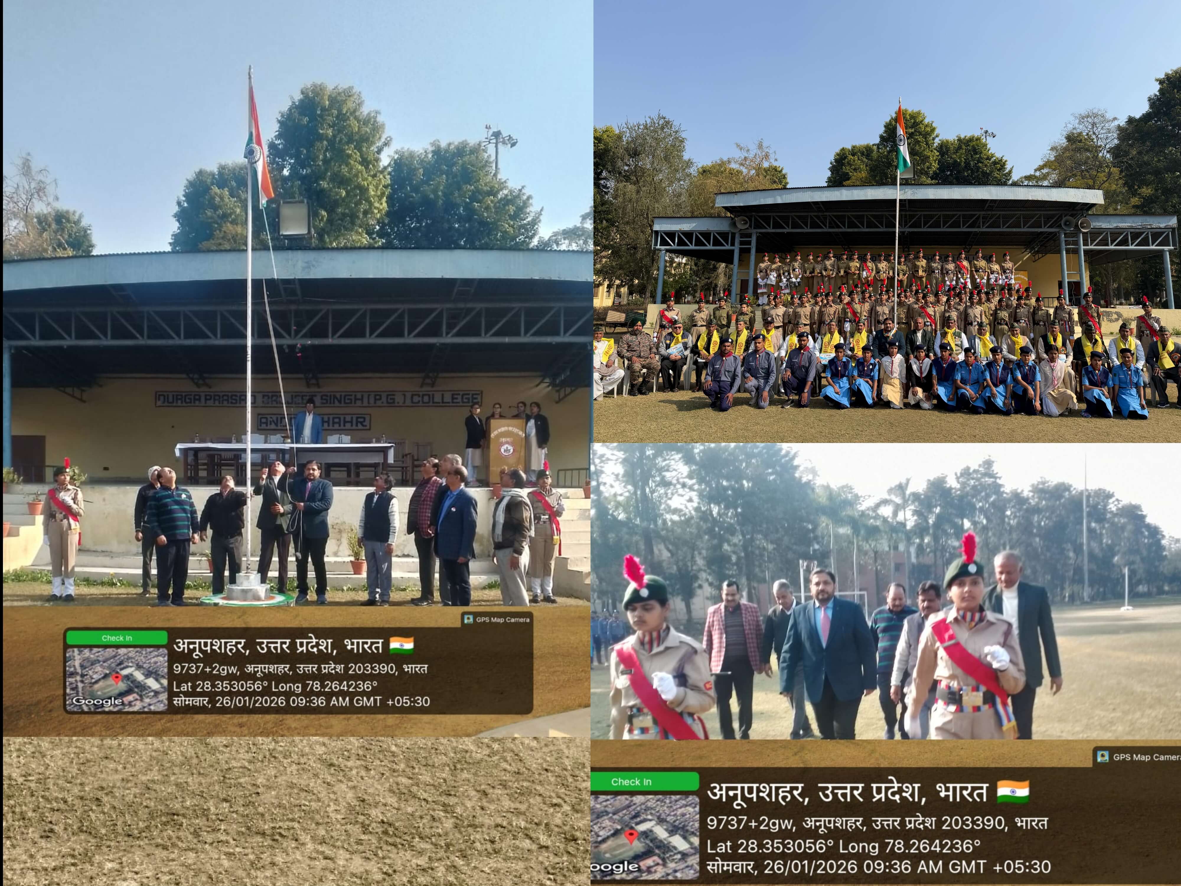 दिनांक 15/01/2026 – डीपीबीएस कॉलेज, अनूपशहर में 41वीं वाहिनी एनसीसी के कमान अधिकारी कर्नल आशीष नौटियाल के निर्देशन में आज थल सेवा दिवस का कार्यक्रम आयोजित किया गया। इस कार्यक्रम की अध्यक्षता प्राचार्य प्रो. जी. के. सिंह ने की। कार्यक्रम की शुरुआत ध्वजा रोहण और राष्ट्रगान से हुई।