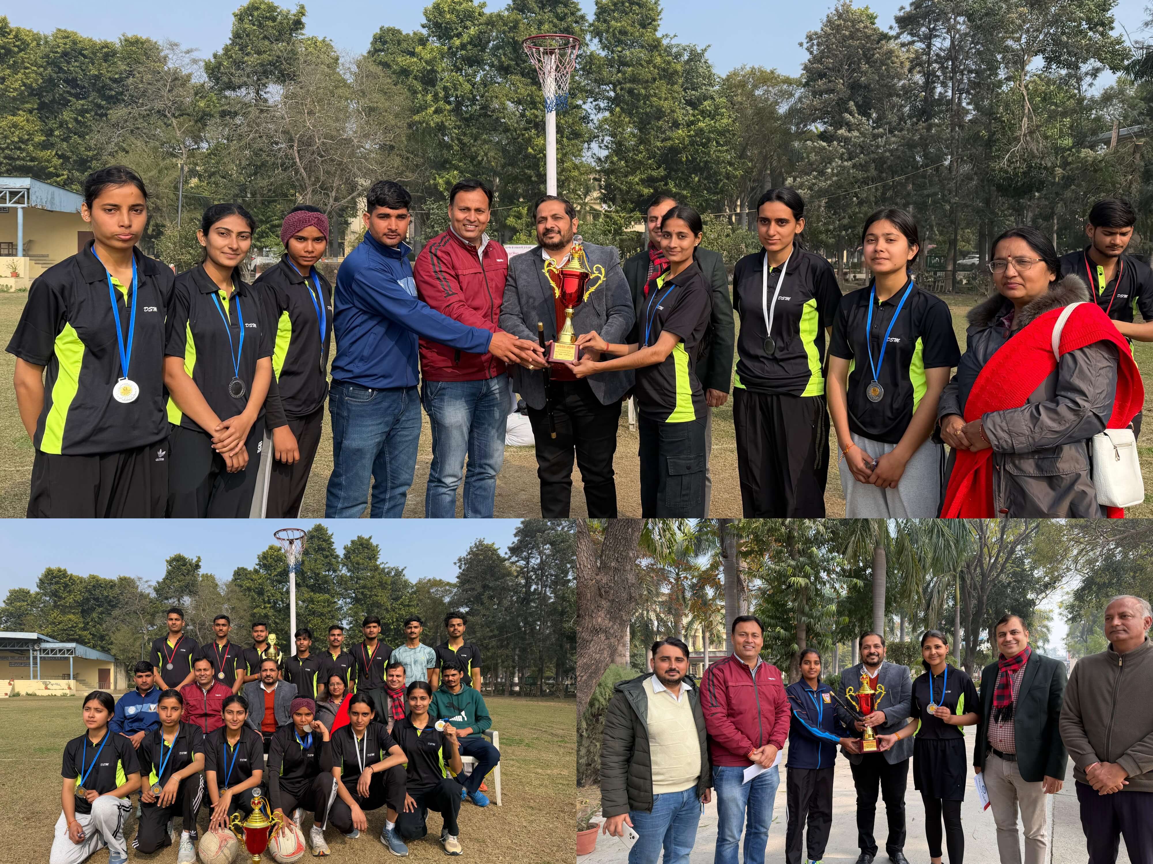 दिनांक 05.02.2026 डीपीबीएस कॉलेज अनूपशहर की नेटबॉल टीमों का विश्वविद्यालय स्तर पर शानदार प्रदर्शन:महिला टीम उपविजेता, पुरुष टीम ने हासिल किया तृतीय स्थान: डीपीबीएस कॉलेज अनूपशहर की नेटबॉल महिला एवं नेटबॉल पुरुष टीमों ने चौधरी चरण सिंह विश्वविद्यालय मेरठ द्वारा आयोजित अंतर महाविद्यालय नेटबॉल प्रतियोगिता में उत्कृष्ट प्रदर्शन करते हुए क्रमशः उपविजेता एवं तृतीय स्थान प्राप्त कर महाविद्यालय का नाम रोशन किया। यह प्रतिष्ठित प्रतियोगिता एएस कॉलेज, मवाना, मेरठ में दिनांक 02 से 03 फरवरी 2026 को आयोजित की गई थी, जिसमें विश्वविद्यालय से संबद्ध अनेक महाविद्यालयों की टीमों ने भाग लिया। इस उल्लेखनीय उपलब्धि पर महाविद्यालय के प्राचार्य प्रोफेसर गिरीश कुमार सिंह द्वारा शारीरिक शिक्षा विभाग के विभागाध्यक्ष प्रोफेसर सीमांत कुमार दुबे, टीम कोच गोपाल चौधरी तथा विजेता टीम के सभी खिलाड़ियों का गर्मजोशी से स्वागत एवं सम्मान किया गया।