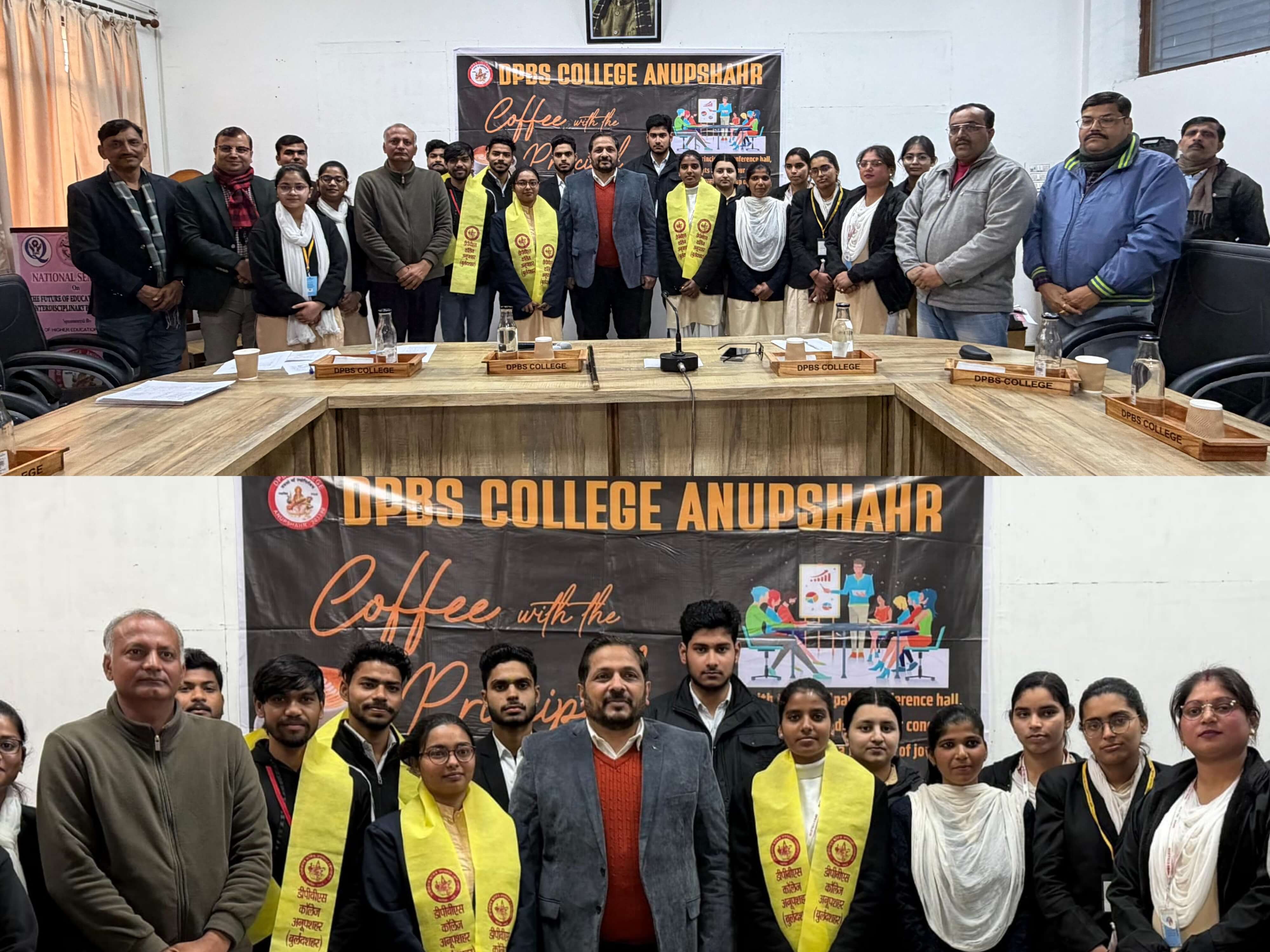 दिनांक 04/02/2026 को डीपीबीएस महाविद्यालय, अनूपशहर में कॉफी विद प्रिंसिपल कार्यक्रम का सफल आयोजन किया गया। इस अवसर पर महाविद्यालय के विभिन्न संकायों कला, वाणिज्य एवं विज्ञान के विद्यार्थियों ने प्राचार्य महोदय से सीधा संवाद किया। कार्यक्रम का उद्देश्य विद्यार्थियों को एक सहज एवं अनौपचारिक वातावरण में अपने शैक्षणिक, करियर एवं व्यक्तिगत विकास से जुड़े विचार, समस्याएँ और सुझाव साझा करने का अवसर प्रदान करना था। विद्यार्थियों ने पाठ्यक्रम, परीक्षाओं, करियर मार्गदर्शन एवं संस्थागत सुविधाओं से संबंधित प्रश्न रखे, जिनका प्राचार्य, महोदय ने सरल एवं प्रेरक शब्दों में समाधान प्रस्तुत किया। महाविद्यालय प्राचार्य, प्रोफेसर जी. के. सिंह ने अपने उद्बोधन में विद्यार्थियों को लक्ष्य निर्धारण, अनुशासन एवं सकारात्मक सोच के महत्व पर बल दिया तथा उनके उज्ज्वल भविष्य के लिए शुभकामनाएँ दीं। कार्यक्रम सौहार्दपूर्ण वातावरण में संपन्न हुआ और विद्यार्थियों ने इसे अत्यंत उपयोगी एवं प्रेरणादायक बताया। चर्चा के दौरान प्राचार्य ने घोषणा की कि आगामी सत्र से कक्षाओं को स्मार्ट क्लासरूम में परिवर्तित किया जाएगा। साथ ही छात्रों को वैश्विक प्रतिस्पर्धा के अनुरूप तैयार करने के लिए आर्टिफिशियल इंटेलिजेंस (AI) और डेटा एनालिटिक्स से संबंधित शॉर्ट-टर्म कोर्स शुरू किए जाएंगे। छात्रों के नवाचार को प्रोत्साहित करने हेतु कॉलेज परिसर में स्टार्टअप इन्क्यूबेशन सेंटर स्थापित करने पर भी सहमति बनी, जहाँ छात्रों को तकनीकी सहयोग के साथ-साथ उद्योग विशेषज्ञों से मेंटरशिप उपलब्ध कराई जाएगी। पर्यावरण संरक्षण को लेकर छात्रों ने ग्रीन कैंपस, जीरो वेस्ट नीति और सौर ऊर्जा के अधिक उपयोग का सुझाव दिया। प्राचार्य ने रेन वाटर हार्वेस्टिंग और सोलर पैनलों की संख्या बढ़ाने का आश्वासन दिया। इसके अतिरिक्त, शोध संस्कृति को सशक्त करने के लिए कॉलेज लाइब्रेरी को 24×7 डिजिटल एक्सेस से जोड़ने की योजना भी साझा की गई। छात्रों ने भी अपने अनुभव साझा किए। एमएससी की छात्रा मिलन शर्मा ने कहा कि इस सीधे संवाद से उनका आत्मविश्वास बढ़ा है। वहीं बीकॉम की छात्रा अनुष्का तोमर ने इंटर्नशिप और रोजगारपरक अवसरों पर विशेष ध्यान देने का सुझाव दिया।