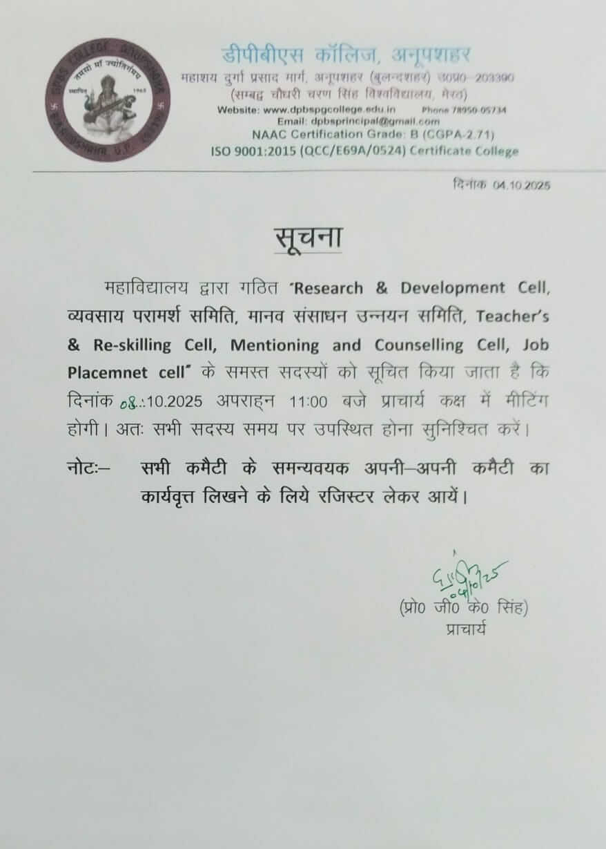 कौशल विकास प्रकोष्ठ की मीटिंग के संदर्भ में