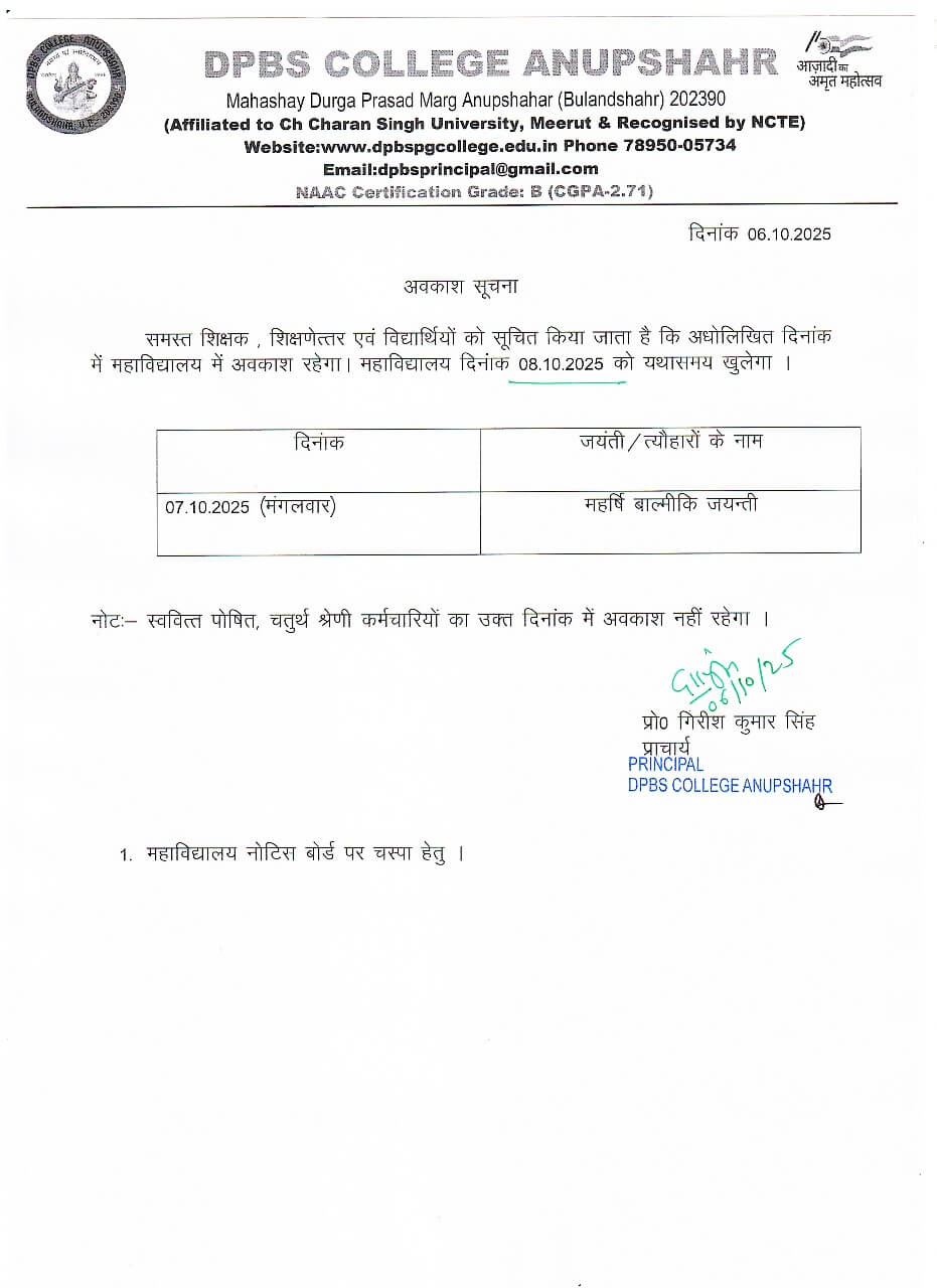 Regarding Holiday of Maharishi Valmiki Jayanti