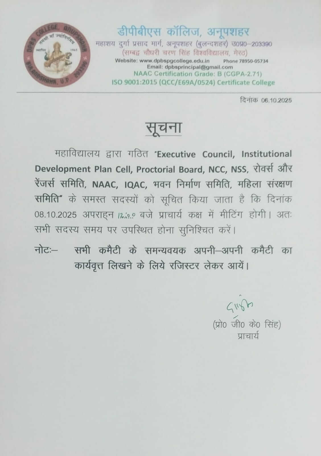 पोर्टल नियंत्रण/डाटा अनुरक्षण/ सूचना एवं प्रौद्योगिकी समिति की मीटिंग के संदर्भ में
